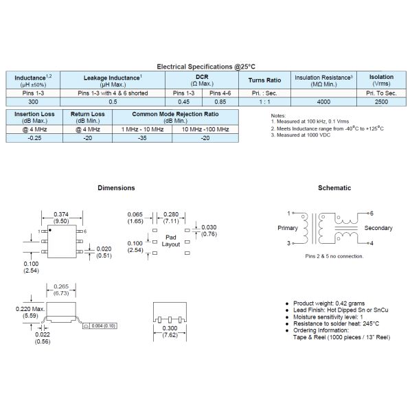 EPF8305G-LF BMS Transformer,Optimized for 1Mbps Isolated Serial Communications